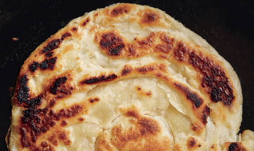 Heat a large cast-iron griddle or skillet over medium-high heat. Working 1 at a time, brush both sides of a dough round with room-temperature butter and cook until lightly blistered and cooked through, about 2 minutes per side. Transfer bread to a wire rack and sprinkle with sea salt.