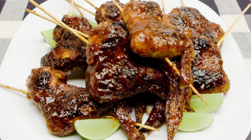 Mix together chili powder, paprika, brown sugar, cumin, garlic powder, salt and pepper. Straighten each chicken wing; push skewer through length from base to tip. Rub all over with spice mix. Cover and let stand for 30 minutes or refrigerate for up to 24 hours, turning occasionally.