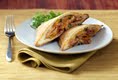 2. Separate dough into 4 rectangles; press perforations to seal. Spoon 1/2 cup chicken mixture onto half of each rectangle; sprinkle with cheese. Fold dough over filling; press edges with fork to seal.