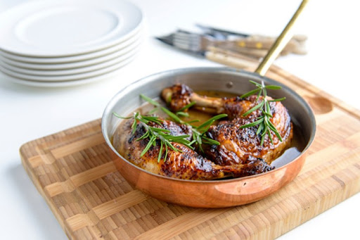 Remove the chicken from the pan and set it aside to rest.