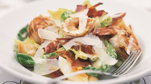 4. Put the lettuce in a large bowl, add the dressing and toss to coat. Gently mix the prawns, prosciutto, croutons and egg quarters through. Divide between four serving plates and scatter with the shaved parmesan. Season to taste and serve at once.