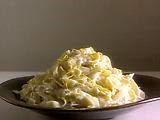 Add the pasta and toss. Add the remaining 1/2 cup of cream, and Parmesan to the cream sauce in the skillet. Add the lemon zest, nutmeg, salt, and white pepper. Toss the pasta mixture over low heat until the sauce thickens slightly, about 1 minute.