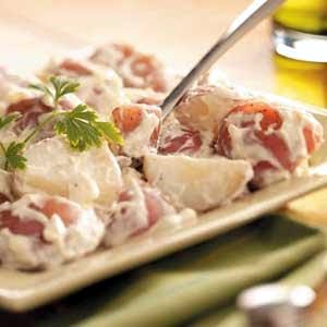 Place potatoes in a 3-qt. slow cooker. In a small bowl, beat cream cheese, soup and salad dressing mix until blended. Stir into potatoes. Cover and cook on low for 8 hours or until potatoes are tender.
