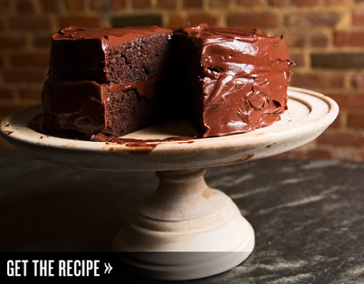 1. Make the chocolate cake: Preheat the oven to 350°. Grease the bottoms and sides of two 9-inch cake pans with butter and dust evenly with cocoa powder, tapping out the excess.
