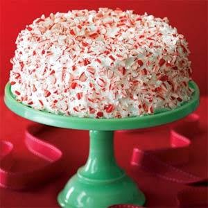 Notes: For a shortcut version, start with a store-bought angel food cake. The very fine candy "dust" left over from crushing the candy canes is delicious sprinkled on vanilla ice cream or stirred into hot cocoa. To maximize the dramatic look of this cake, add the crushed candy just before serving; the moisture from the whipped cream makes the peppermint begin to "melt" after half an hour.