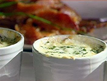 Retire del horno y rocíe cada cazuela con 2 cucharadas de crema de leche y luego espolvoree con 2 cucharadas de queso suizo sobre la parte superior de cada uno. Espolvorear el perejil y el cebollino en los moldes y luego volver al horno. Cocine hasta que los huevos se terminen de cocer, pero todavía con las yemas estén tiernas, de 10 a 12 minutos, o hasta el punto deseado de cocción. Retire del horno y servir inmediatamente.