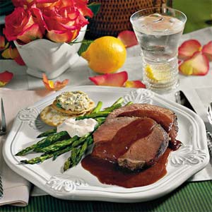 Bake at 500° for 30 to 35 minutes or until a meat thermometer inserted into thickest portion of tenderloin registers 145° (medium-rare). Loosely cover tenderloin with aluminum foil, and let stand 15 minutes before serving. Serve tenderloin with sauce and dinner rolls.