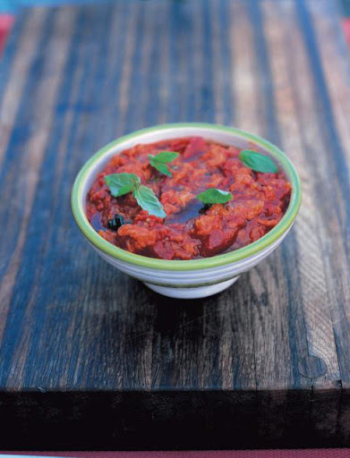 Tear the bread up into thumb-sized pieces and add them to the pan. Mix well and season to taste. Tear in the basil leaves and let the soup sit on a low heat for 10 minutes. By this time your roasted tomatoes will be done, with juice bursting out of their skins, so remove them from the tray, remembering to scrape all the lovely sticky bits from the bottom. Pour them into the soup with all the juices, basil and oil from the tray.