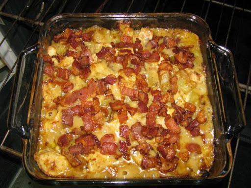 11. Remove foil, top with crumbled bacon and bake an additional 10 minutes, uncovered.