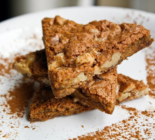 Mix brown sugar, flour and salt together, set aside. Combine eggs and vanilla, beat well. Add egg mixture to flour and mix until smooth. Fold in walnuts. Pour into prepared pan and bake for 20-25 minutes. Cut into bars while still warm.
