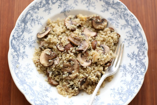 Add the quinoa and toss with the garlic and mushrooms. Add the remaining salt and pepper and adjust to taste. Enjoy!