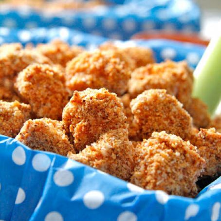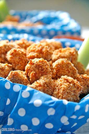 Baked Buffalo Popcorn Chicken with Creamy Honey Buffalo Dip