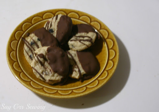 Dip the cookies in the chocolate and set on waxed paper to cool.
