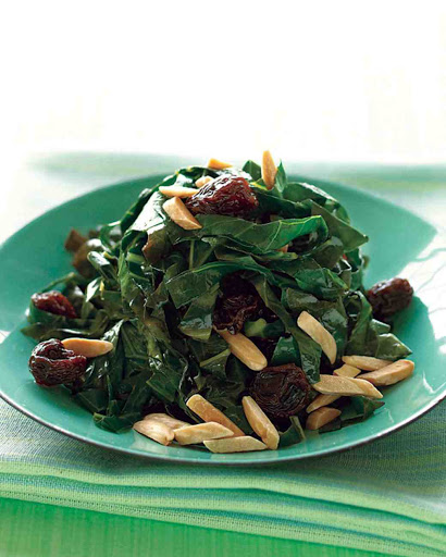 - 1 1/4 pounds (about 2 bunches) collard greens, stalks removed, leaves thinly sliced crosswise