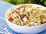 Add the pasta and mozzarella to the tomato mixture and toss. Stir in the basil and lemon zest, and season with salt and pepper. Refrigerate, tossing occasionally, until serving.