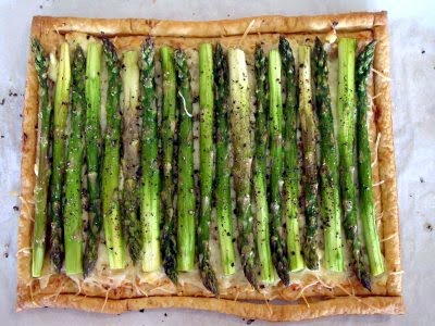 2. Remove pastry shell from oven, and sprinkle with Gruyere. Trim the bottoms of the asparagus spears to fit crosswise inside the tart shell; arrange in a single layer over Gruyere, alternating ends and tips. Brush with oil, and season with salt and pepper. Bake until spears are tender, 20 to 25 minutes.