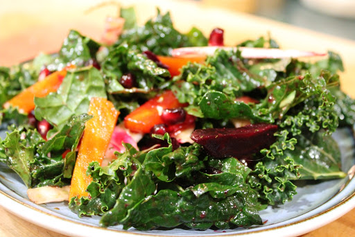 3. Transfer beets to large bowl, and add kale and fennel. Pour in Dressing, and toss gently until all ingredients are coated. Top with pistachios, and garnish with fennel fronds.