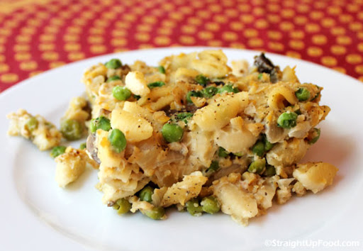This hearty casserole calls for garbanzo beans instead of tuna, and mushrooms instead of the traditional can of salt-heavy Cream of Mushroom Soup (has over 1,000mg sodium per can). Perfect for “comfort food” night. No-nut option as well.