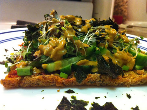 Adzuki Bean Quinoa Sesame Pizza with Spicy Sun-Dried Tomato Marinara Sauce