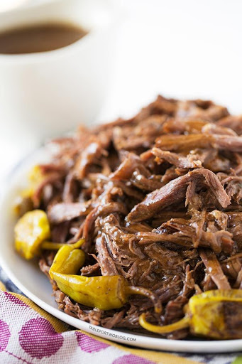 Add 1/4 water and roast to the crock pot. Sprinkle the ranch dressing and aj jus gravy mix over the top of the roast. Then place 6 Tbsp of butter on top of roast. Cover and cook on low for 8 hours.