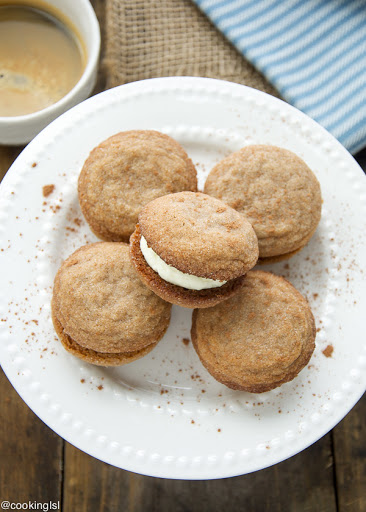 1.Fill a piping bag with the filling. Pipe it into the bottom of half of the cookies (the amount should be around 1 tbsp).