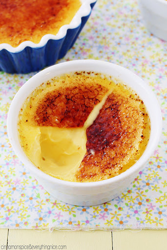 Right before serving sprinkle each one with 1 teaspoon sugar. Use a mini blow torch to caramelize the sugar - hold it a few inches away and move it slowly in circles until the sugar bubbles then turns golden.