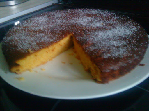 Pour the pulp into the sugar/egg mix and add the almond meal. Gently mix together.