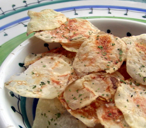 hese potato chips are very easy to make in the microwave. Also, they are healthier for you as they are not cooked in any oils. This method has intrigued so many people that have tasted them and then made them for themselves. The younger people just love them.
