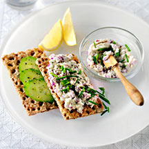 This lightened-up pâté recipes is made from protein-packed sardines and enriched with the fresh flavors of red onion, herbs, zesty lemon, and rich olive oil. Serve this recipe with crackers, toasted bread points, and the raw vegetables of your choice for a smooth and creamy dip that is sure to please all of your favorite guests.