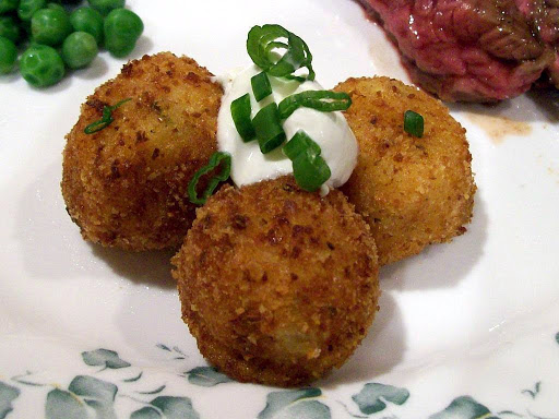 The finished potato patties or puff balls can be held in a warm oven until dinner time.