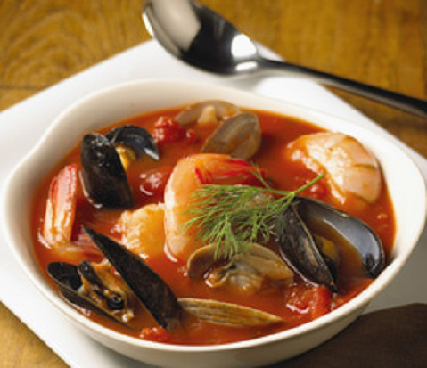 Add the fish, scallops, shrimp and mussels or clams, potatoes and capers, return to a simmer and cook until heated through, about 2 minutes. Garnish with parsley.