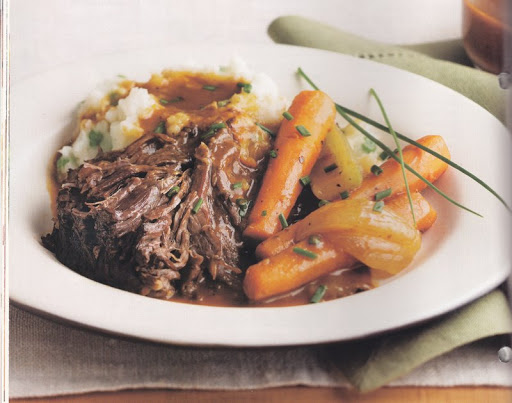 - 1 boneless chuck roast, trimmed, seasoned with salt & pepper (3-4 lb)