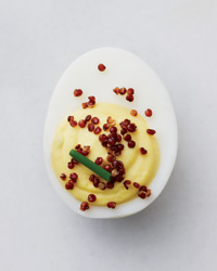 2. Set a fine sieve over a heatproof bowl. In a medium skillet, heat 1/4 inch of oil until shimmering. Add the quinoa and fry over moderate heat, stirring, until the sizzling subsides and the quinoa is crisp, about 2 minutes. Drain the quinoa in the sieve and transfer to paper towels. Season with salt.