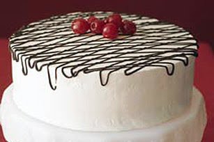 MELT chocolate as directed on package; cool slightly. Drizzle over cake. Garnish with reserved cherries. Store in refrigerator