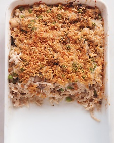 Add chicken broth, whisking constantly, and bring to a boil. Add chicken and rice and return to a simmer. Stir in peas, parsley, and sour cream; season with salt and pepper. Transfer mixture to an 8-inch square baking dish. Top with breadcrumbs.