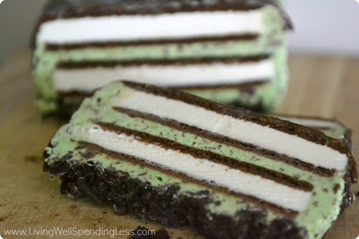 3. Spread layer of ice cream over-top of sandwiches, about 1-1 1/2″ thick.