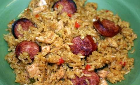 - 6 sausages (Andoille, preferred), sliced 1/2" thick and kept refrigerated