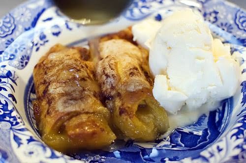 Serve with ice cream, and spoon some of the sweet sauces from the pan over the top.