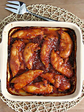 2. When ready to cook, transfer chicken and sauce to oven-safe casserole dish. Bake at 425 degrees for 30-35 minutes until cooked through, then immediately plate and serve, garnishing with diced scallions if desired.