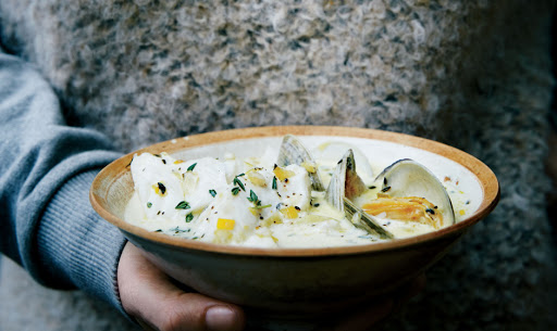 - 2 pounds skinless cod or haddock, cut into large pieces