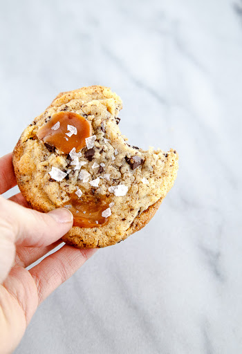 Big Salty Chocolate Chip Cookies with Caramel