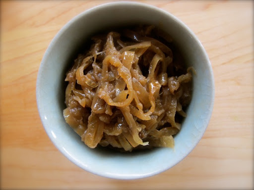 1.Peel, cut in half, and thinly slice enough onions to fill a slow cooker half to three-quarters full.
