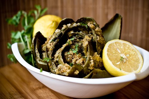 - 6 small to medium artichokes (if you buy large ones, couples can share)