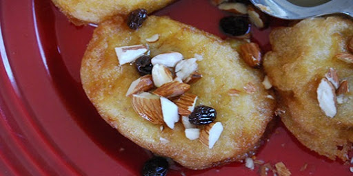If you have leftovers, cover the battered and fried bread pieces with the remaining syrup and almonds, and store covered in the refrigerator. I admit they are also fabulous cold.