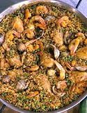Remember, paella is a blank canvas. You can add any fish, meat or vegetables into your paella according to your preferences. Add meats like sausage, chicken and chorizo; fish like prawns, calamari, clams, mussels and scampi; and vegetables like peppers, onions, carrots, peas,
