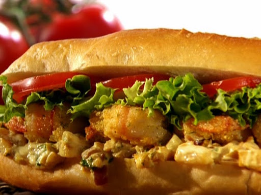 To build the po' boy: Slather the pineapple-mayonnaise mixture on 1 side of each bun bottom. Spoon a generous helping of shrimp over the top. Add some lettuce and tomato and cover with the bun tops. Wrap in plastic and aluminum foil and you're ready for the picnic!