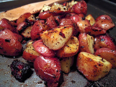 Wash and cut potatoes into quarters or more if they are big. Toss potatoes in olive oil, seasoning and lemon juice. Cover tightly with aluminum foil and bake for 45 minutes.