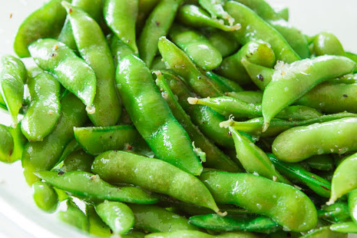 4. Add the cooked soybeans to the pan with the sautéed garlic and season with kosher salt. Saute on medium heat until the edamame is coated with garlic and salt. Serve immediately.