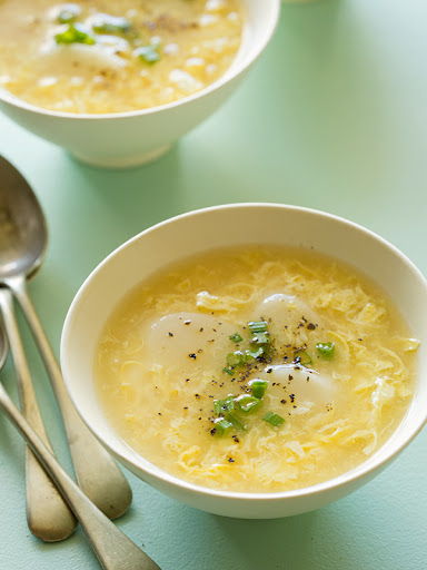 3. Slowly drizzle eggs into the broth, in a very thin stream.