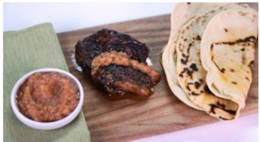 West Indies Roti (Flatbread): Combine the dry ingredients in a stand mixer fitted with the dough hook. Turn the mixer on and gradually add the oil and water while mixing, then mix for 5 minutes. Remove the dough from the mixer and let rest for 10 minutes.